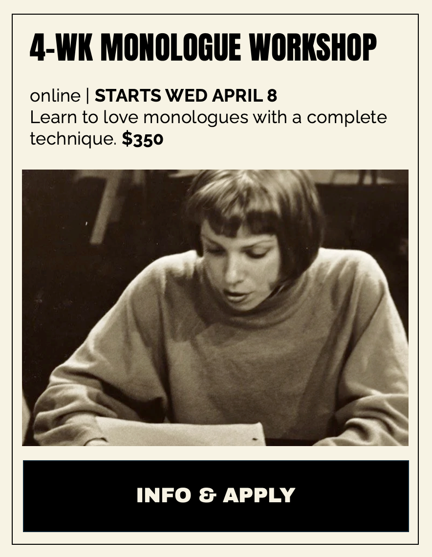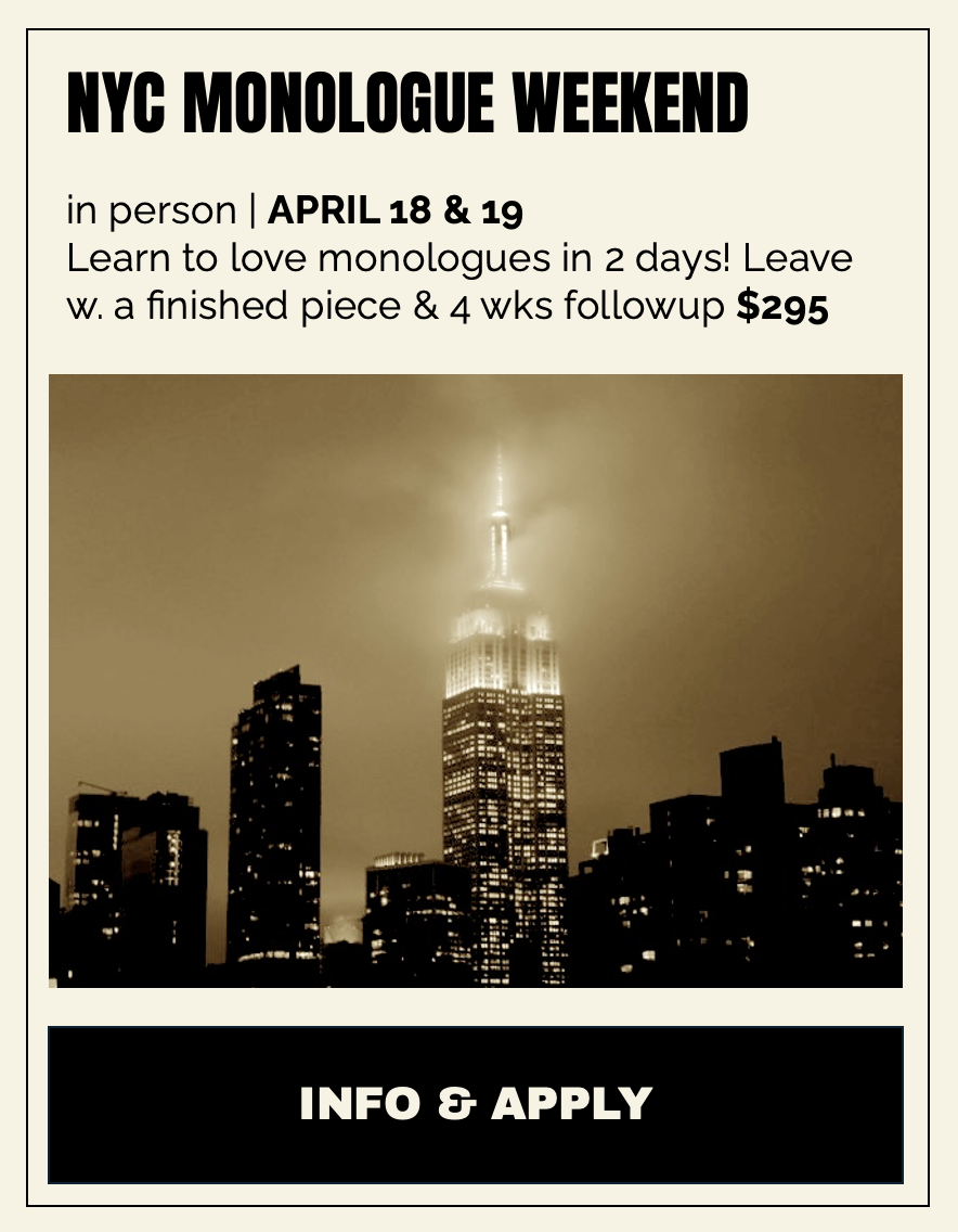 FREE FEEDBACK | Every Monday between 11am and 12noon Eastern, you can send me a monologue (one!)
